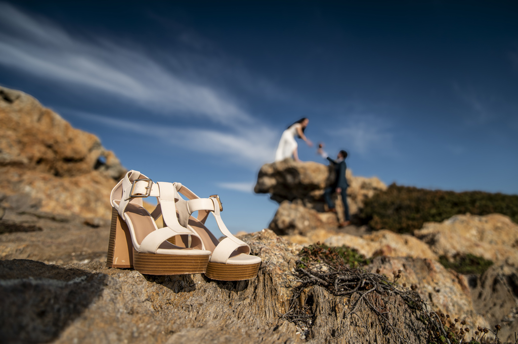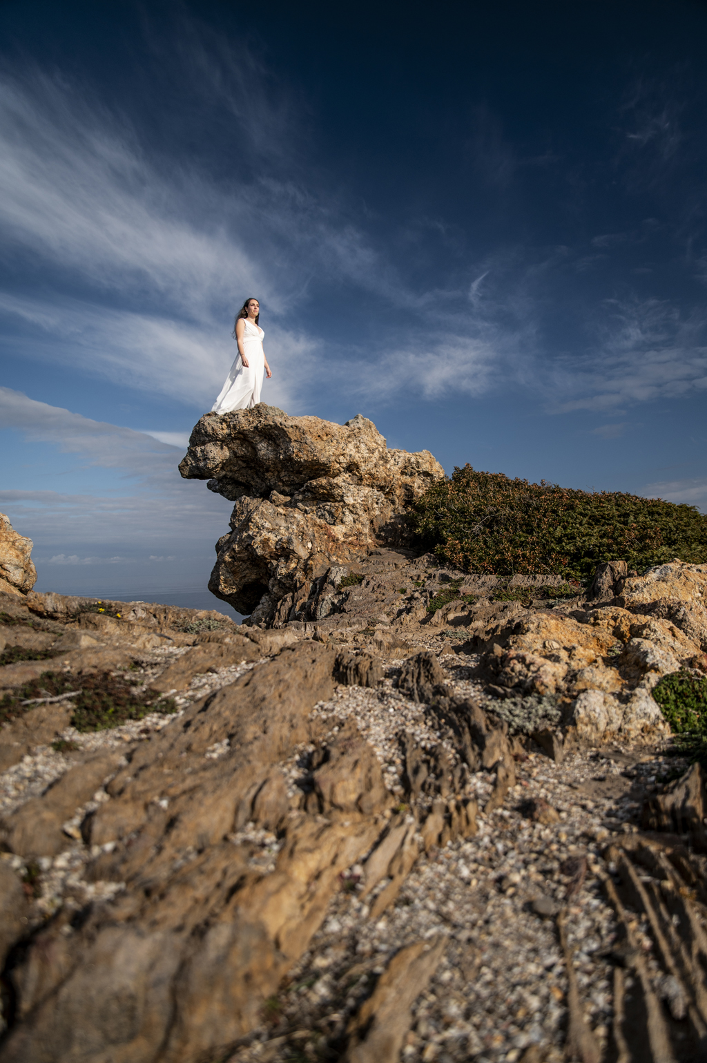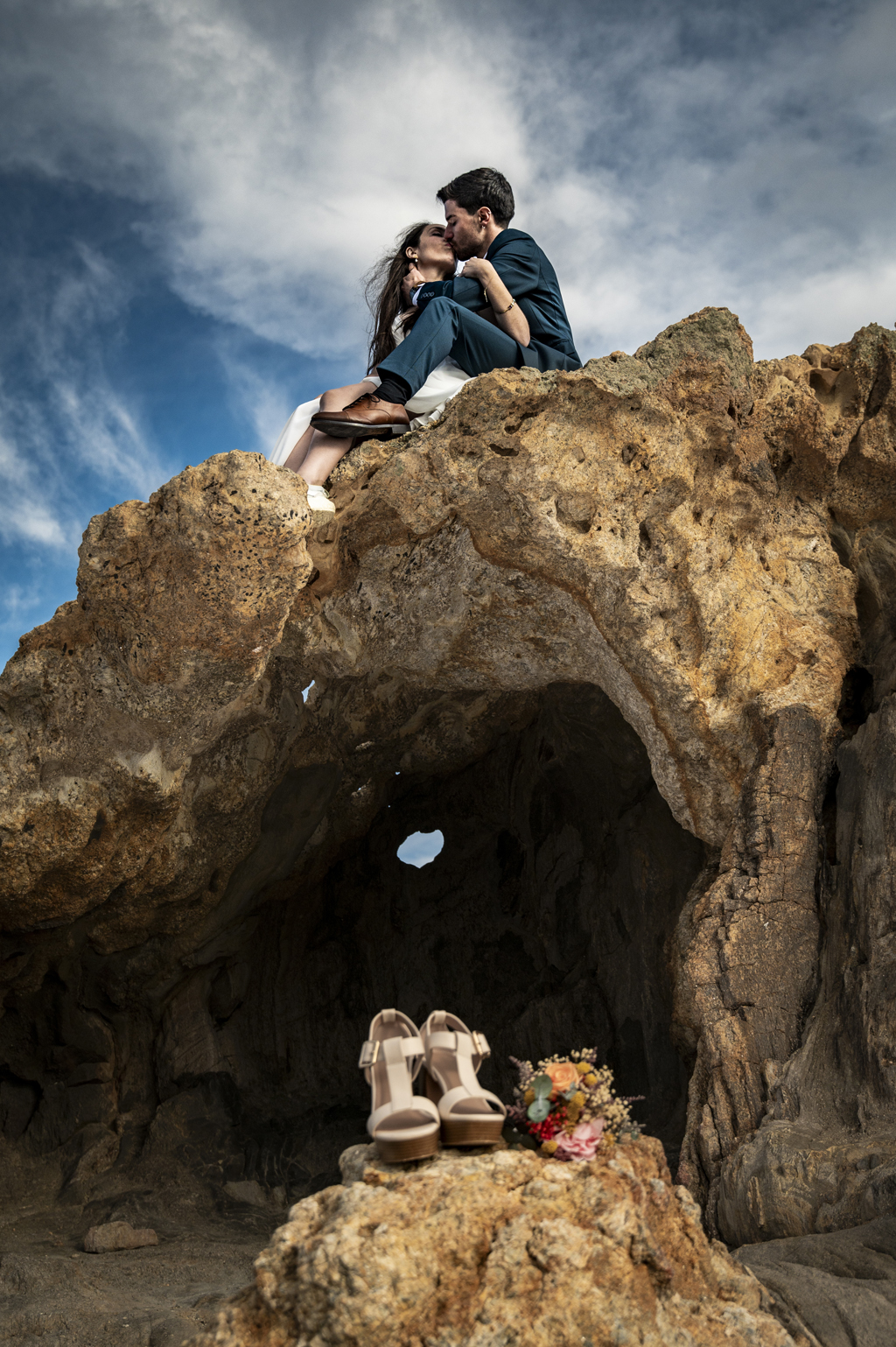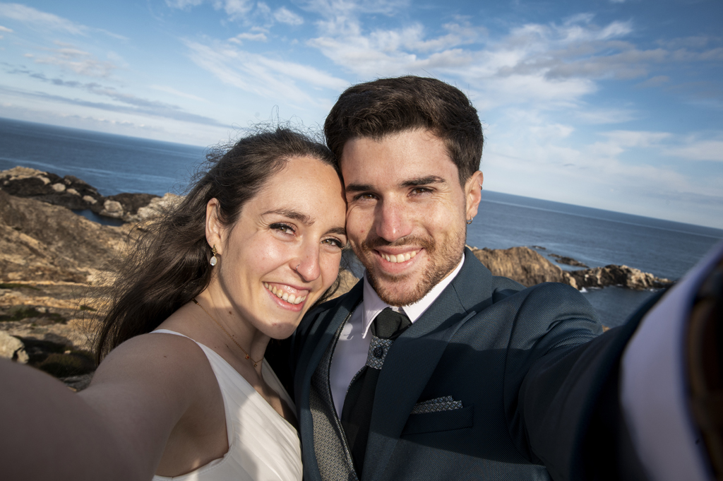 Georgina y Arnau se regalaron un rato más después de la boda. Una aventura entre rocas, mar y cielo abierto donde todos los rincones pedían una foto. Sin prisas, sin guion: solo ellos dos y un paisaje que invitaba a parar un momento y mirar alrededor.